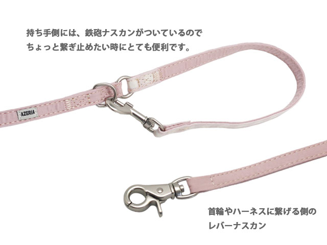 - リードの持ち手側は、鉄砲ナスカンがついているので、ちょっと繋ぎ留めたいときに便利です。