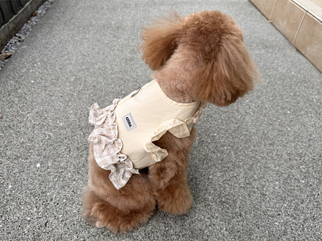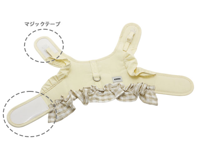 - 首回りと胴回りの2か所マジックテープで簡単に装着。