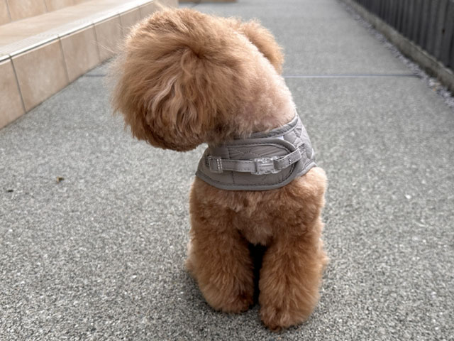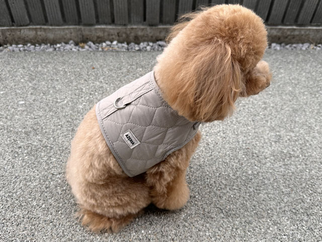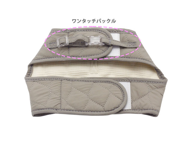 - 首回りと胴回りの2か所マジックテープで簡単に装着。
