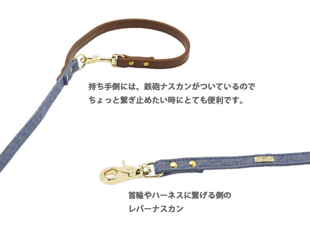 - リードの持ち手側は、鉄砲ナスカンがついているので、ちょっと繋ぎ留めたいときに便利です。