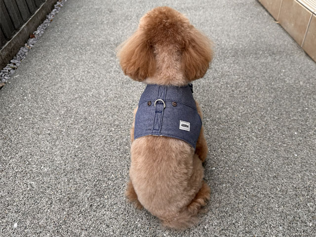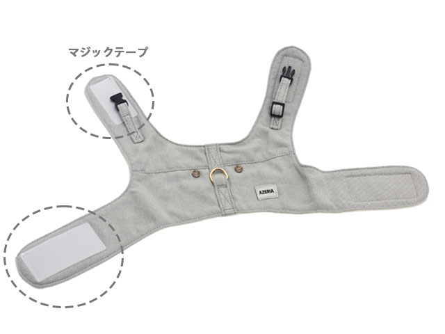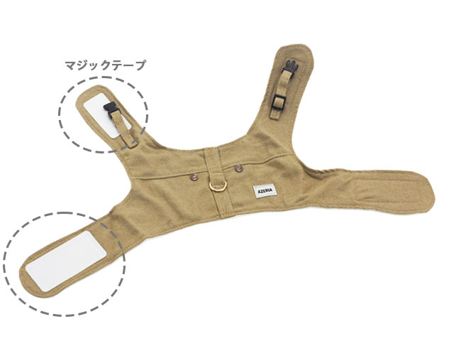 - 首回りと胴回りの2か所マジックテープで簡単に装着。